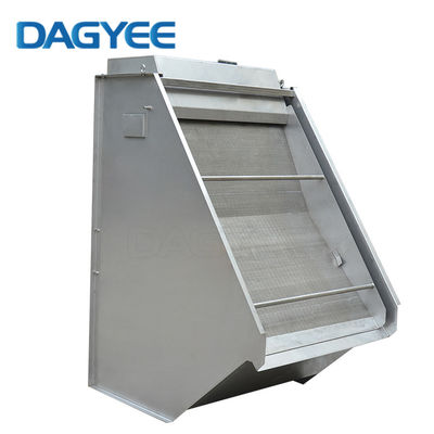 La parte principale dello schermo statico è un filtro curvo di acciaio inossidabile o piano fatto dei coni retinici d'acciaio cuneiformi. L'acqua di scarico da essere passaggi trattati tramite la diga e si distribuisce uniformemente alla superficie propensa dello schermo. Poiché la superficie dello schermo è piccola e regolare, la lacuna posteriore è grande, il drenaggio è regolare, è difficile da bloccare. La materia solida è bloccata e gli scorrimenti dell'acqua filtrati fuori dalla lacuna del piatto di setaccio. Allo stesso tempo, nell'ambito dell'azione di forza idraulica, la materia solida è spinta al più inferiore del piatto di setaccio per scaricare, quindi raggiungendo lo scopo della separazione di solido liquido.