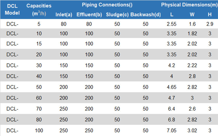 specifiche del chiarificatore della lamella 50M3/hr |